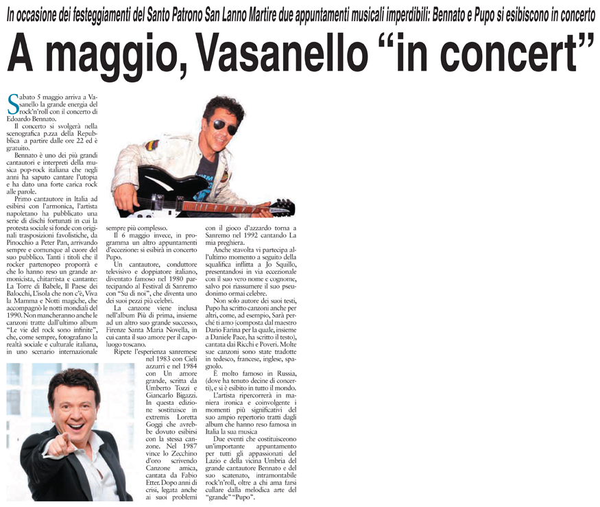 Appuntamenti Musicali Imperdibili: Bennato e Pupo Si Esibiscono In Concerto