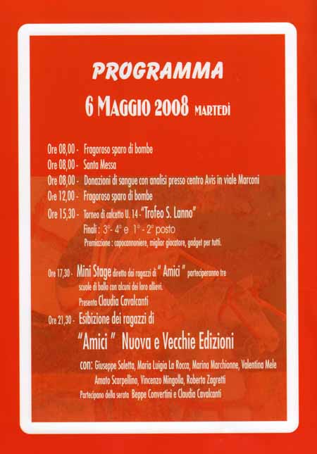 | PROGRAMMA FESTEGGIAMENTI SAN LANNO 2008 | LOCANDINA DI SAN LANNO 2008 | IL LIBRETTO DI SAN LANNO 2008 |